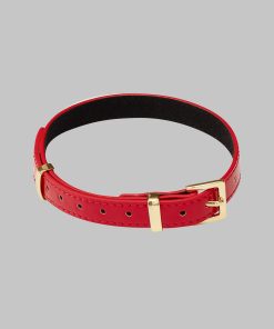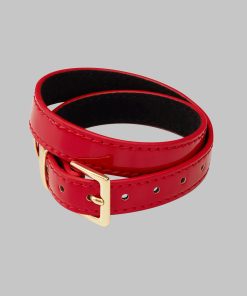 La Liaison can be worn as a single-wrap necklace or a double-wrap bracelet around the wrist, depending on your desire. Its sleek, contrasting design pairs a glossy red patent exterior with a soft black suede-like interior – smooth and pleasant against the skin. The golden signature logo is discreetly placed on the inside, offering a subtle, intimate detail.