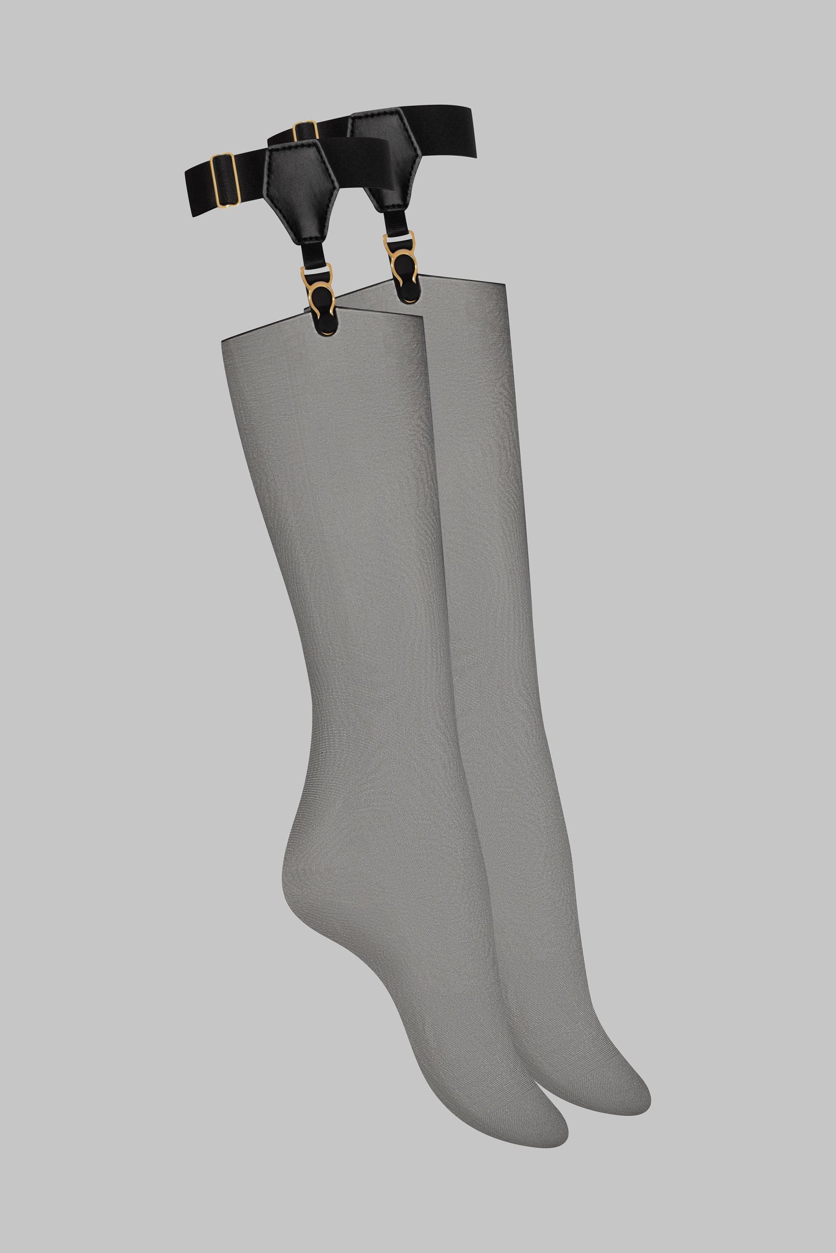 Sock garters with suspender belt attachment. Retro accessories for wearing with knee-highs or fine socks.