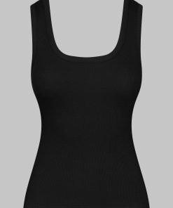 The black tank top stands out for its sleek, fitted style. It is made from organic ribbed cotton, combining softness, just the right thickness and incomparable quality.
