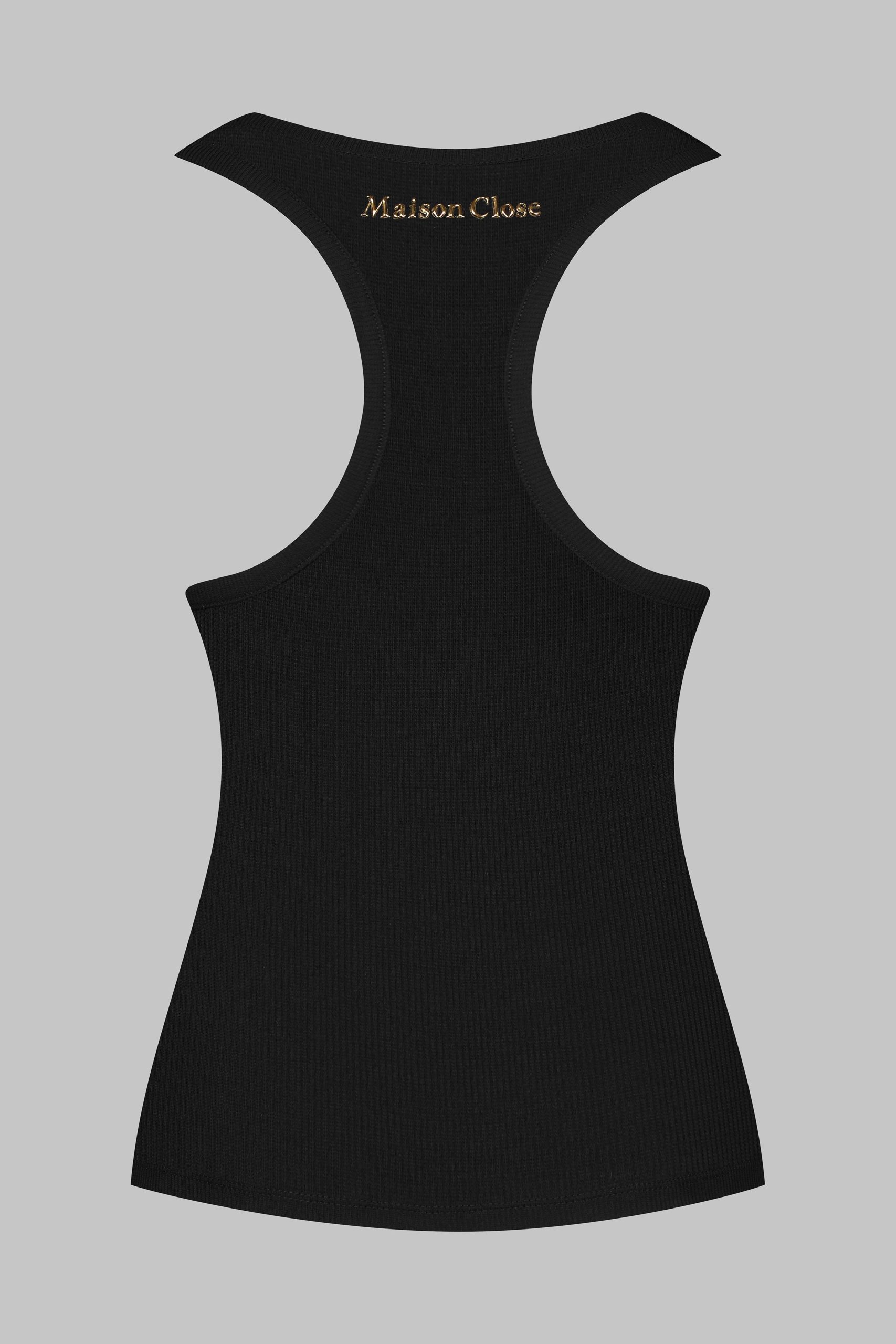 Combined with trousers and skirts from the Maison Close wardrobe or lingerie line, this tank top offers a multitude of masculine-feminine looks.
