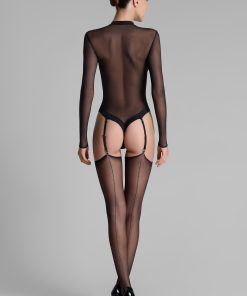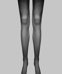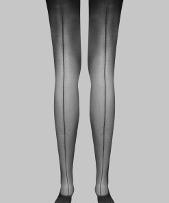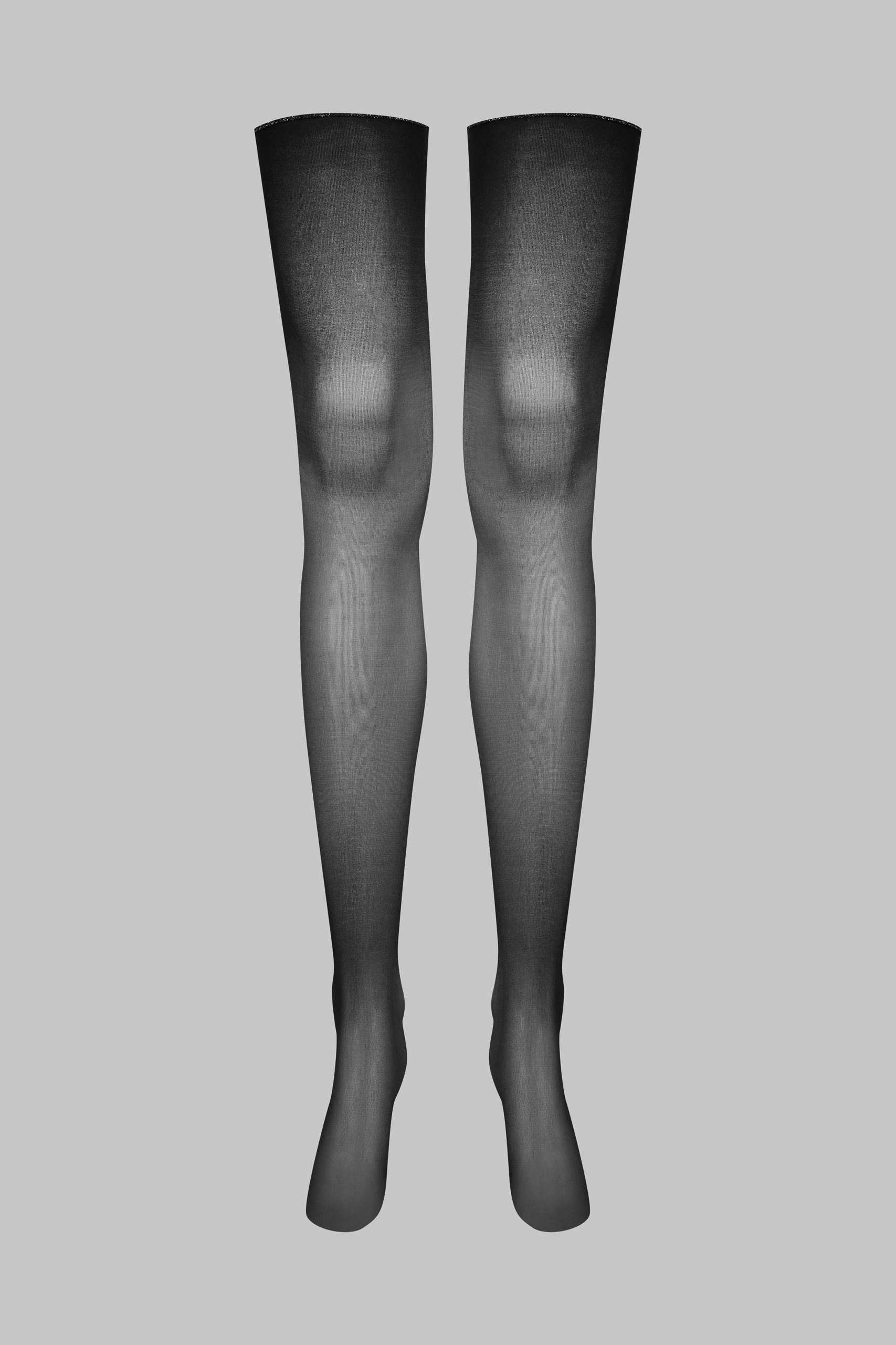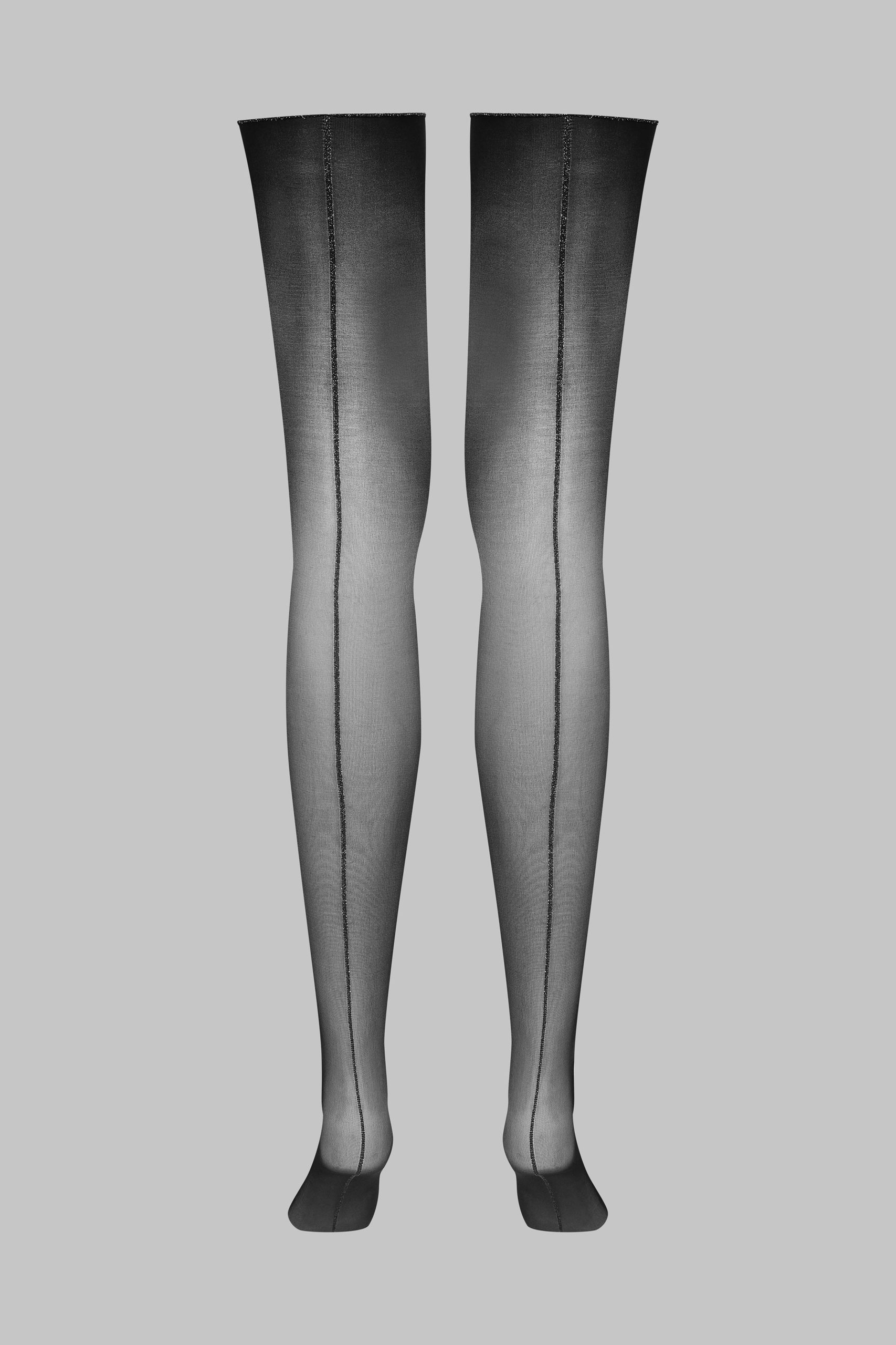 Maison Close’s signature suspender stockings. Black with delicate silver LUREX® stitching that elegantly accentuates the back of the legs for a graphic, playful style. Fine, silky 20 denier voile for combining with a suspender belt for a perfect fit.