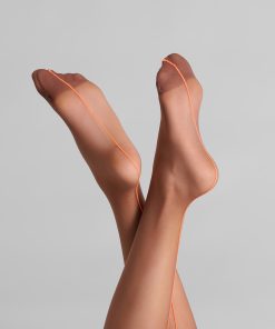 These stockings are accentuated at the back with a fluorescent seam, an effervescent signature with a carefree ’80s vibe. The 20 denier voile makes them sumptuously soft. These stockings with their subtly salacious style are made in Italy, the land of gallantry and passionate lovers.