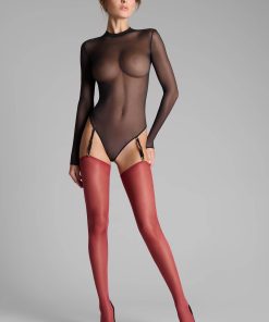 Maison Close’s signature suspender stockings. Fine, silky 20 denier voile for coordinating with the Burgundy Les Fétiches collection for the perfect combination.