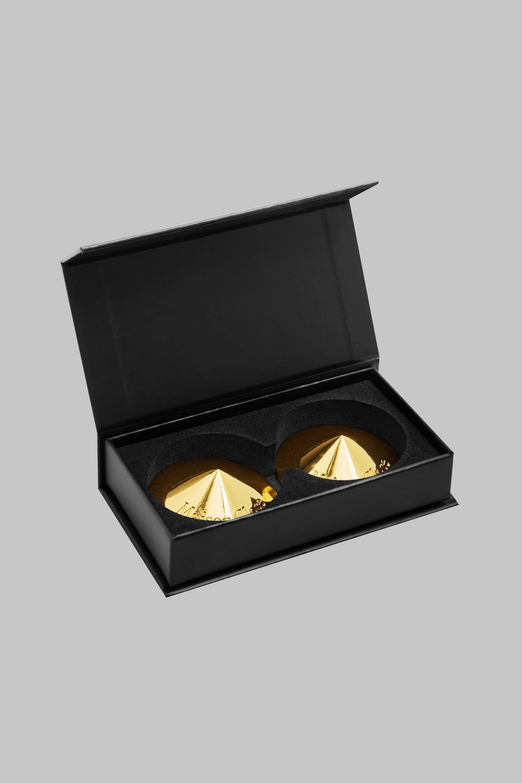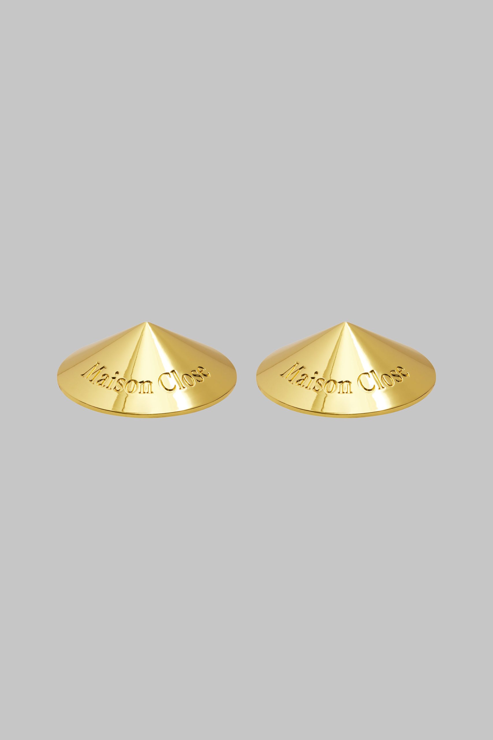 Maison Close engraved metal nipple pasties are essential accessories for accentuating your breasts and embracing your fetish-chic style. Wear with your cupless bras or sheer pieces. Self-adhesive and reusable, they stay in place throughout the evening.