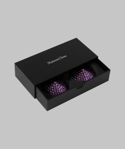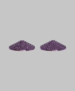 Purple metal nipple pasties embellished with tone-on-tone rhinestones are essential accessories for accentuating your breasts and embracing your fetish-chic style. Self-adhesive and reusable, they stay in place throughout the evening.