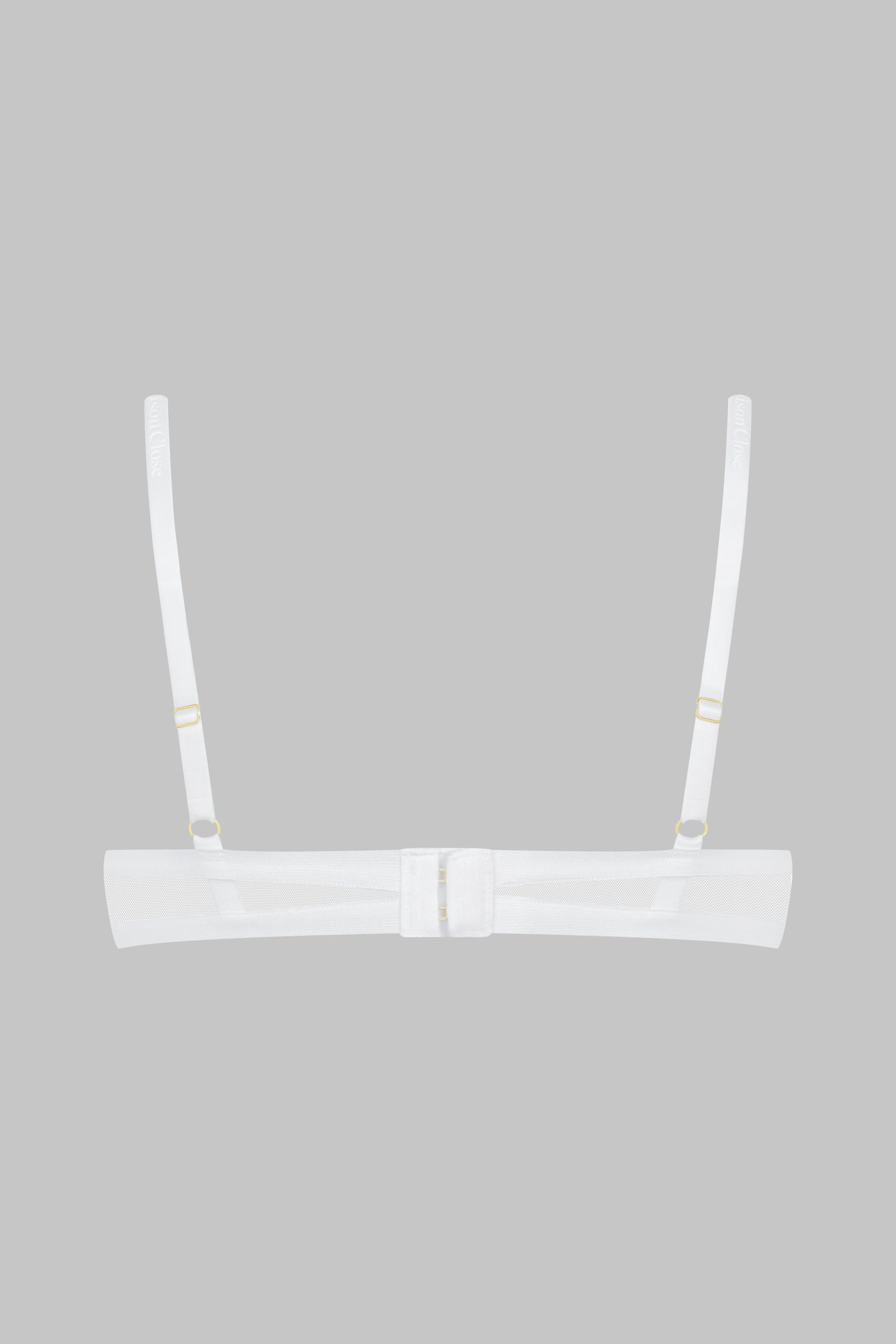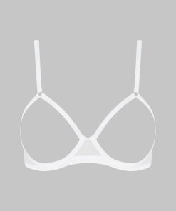 This cupless bra in a white colour with no underwiring features soft mesh with a sheer iridescent appearance.