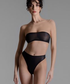 Bandeau bra crafted in fine jersey with shimmering, subtly sheer highlights. Trimmed with an ultra-flat elasticated band that’s invisible under clothes. A wide elasticated underband provides good chest support. The gold signature of the Maison Close logo appears on the back. Can be slipped on and off over the head.