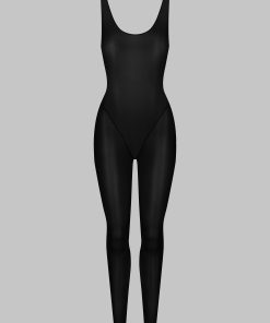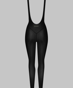 Jumpsuit with large straps crafted from fine jersey with shimmering, subtly sheer highlights. Fitted cut trimmed with an ultra-flat, comfortable elasticated band. Its plunging neckline, accentuated armholes and bold backless style take us back to the ’90s. The gold signature of the Maison Close logo appears in the hollow of the back.