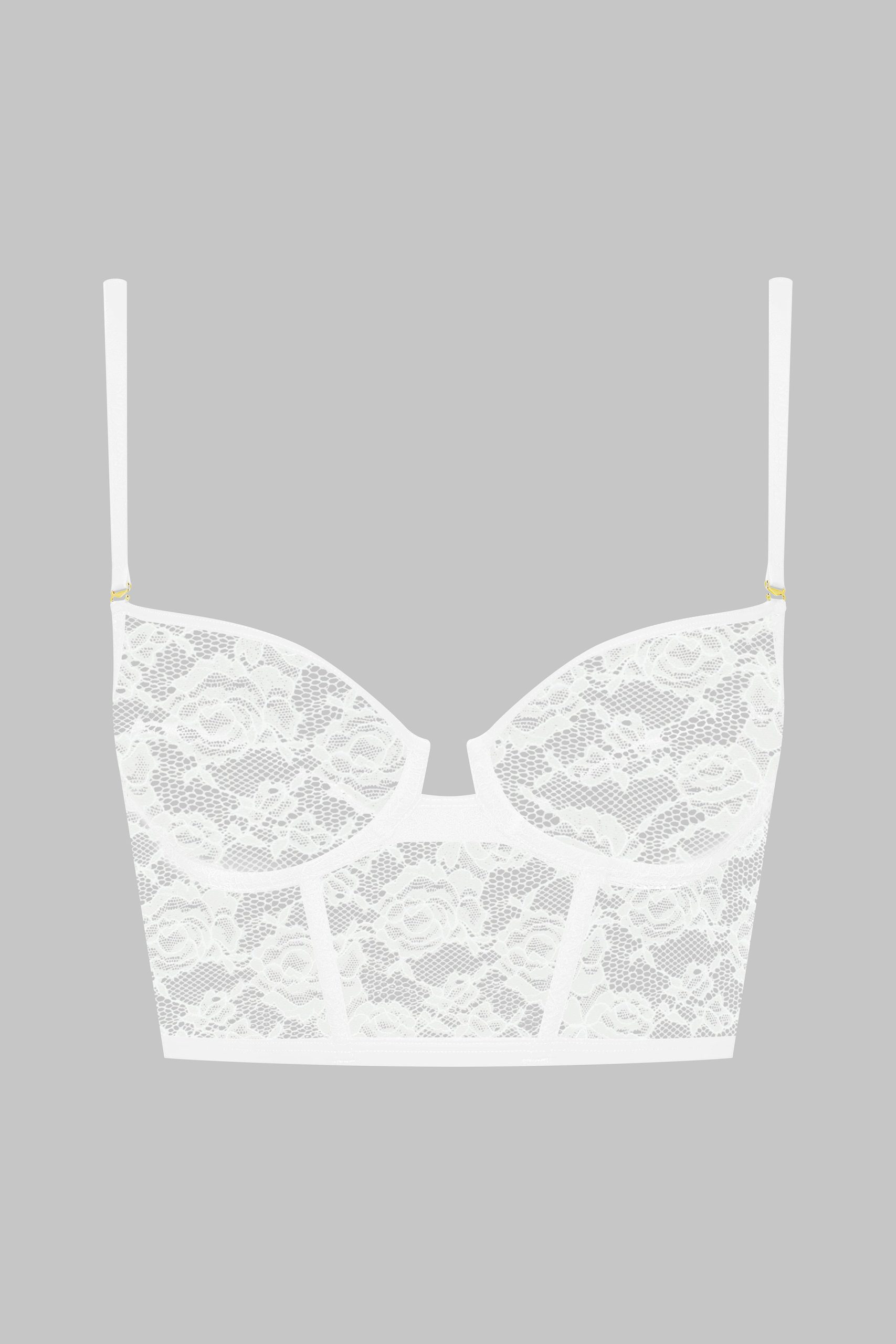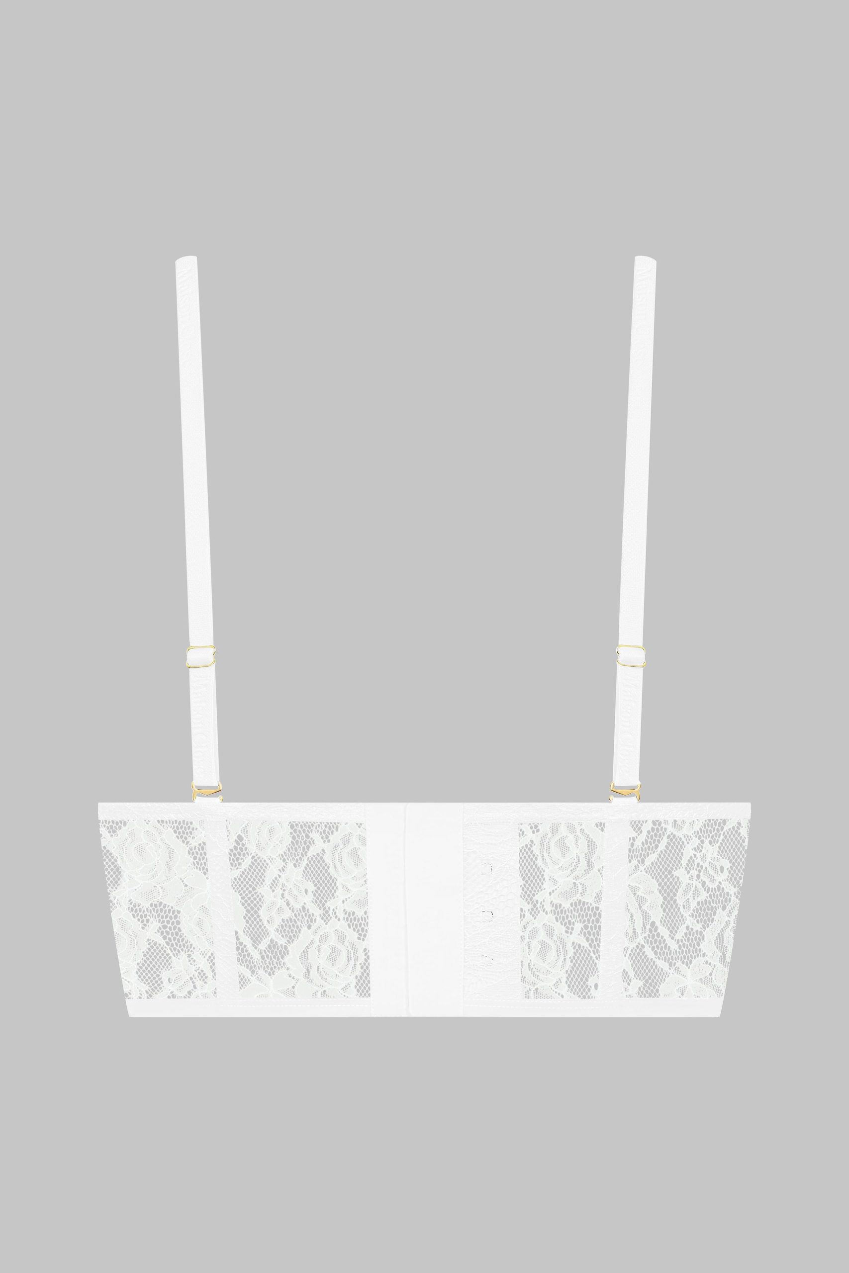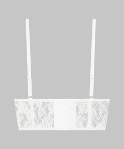 This balconette bra features mostly recycled openwork lace. Underwired cups that fit and shape the breasts perfectly. Bustier design with flexible vertical boning in the front and back. Fastens at the back with a smooth, subtle adjustable clip. Signature adjustable and removable straps with gold accessories. Swap whenever you like with any other Signature straps available in various colours. An opportunity for each Muse to create their own unique mix and match.