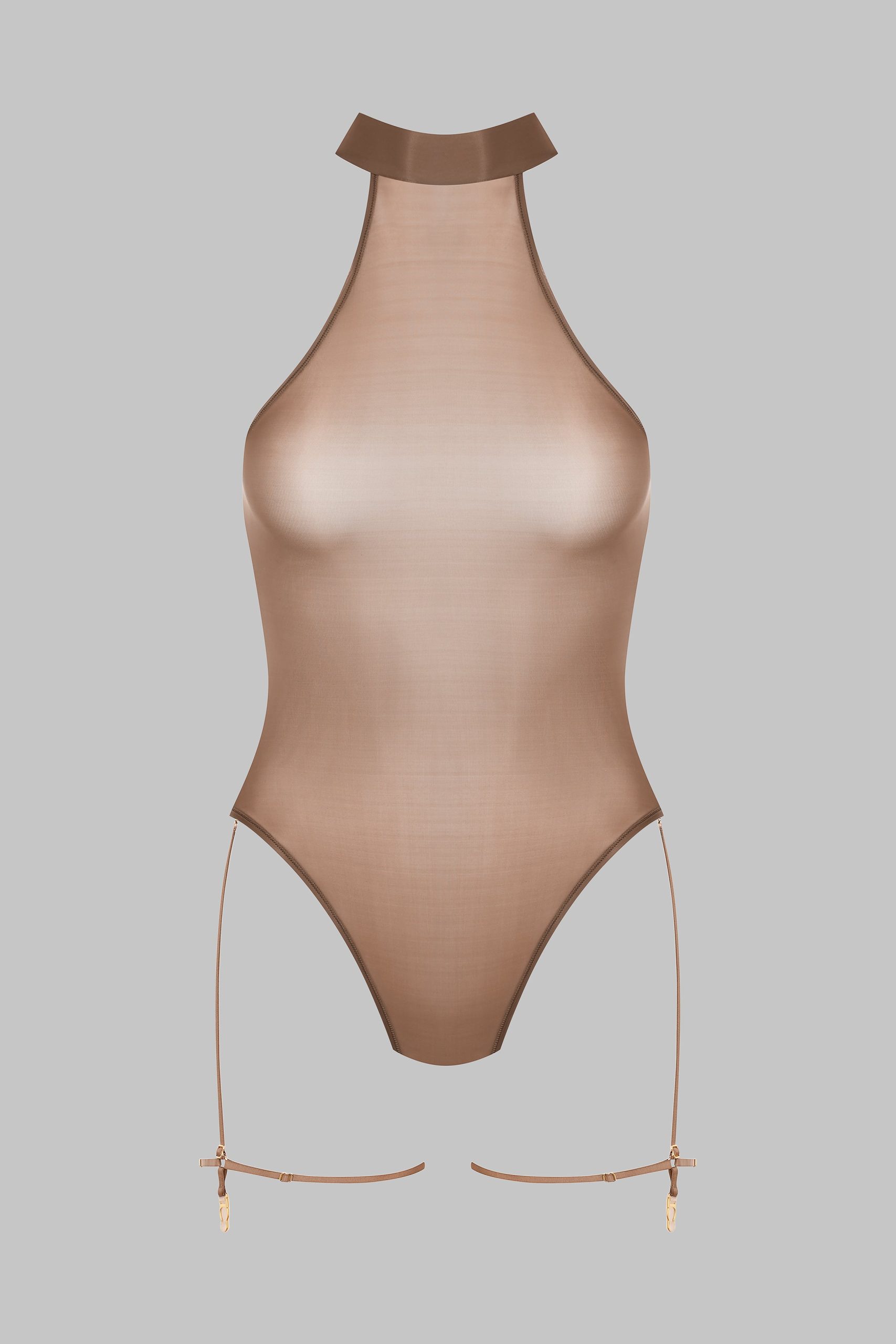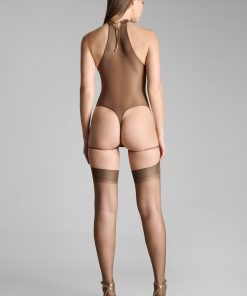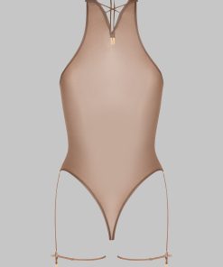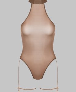 Maison Close Women’s Lingerie French Kiss Light Halter Neck Thong Bodysuit | Mocha