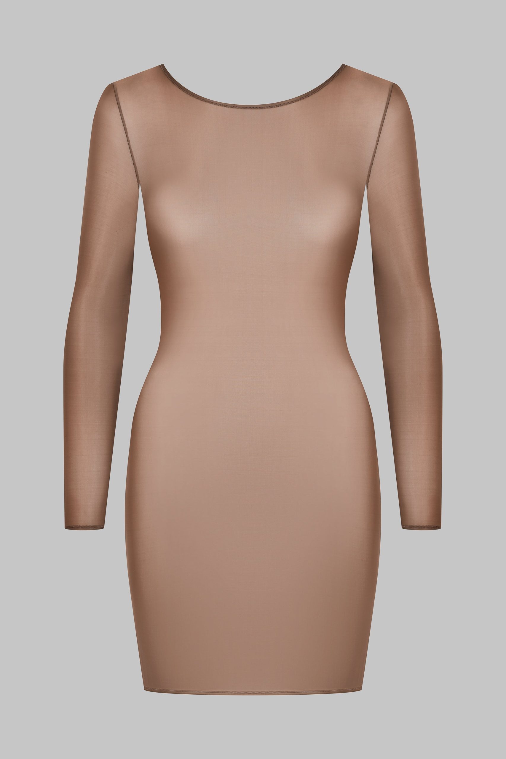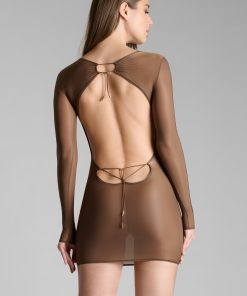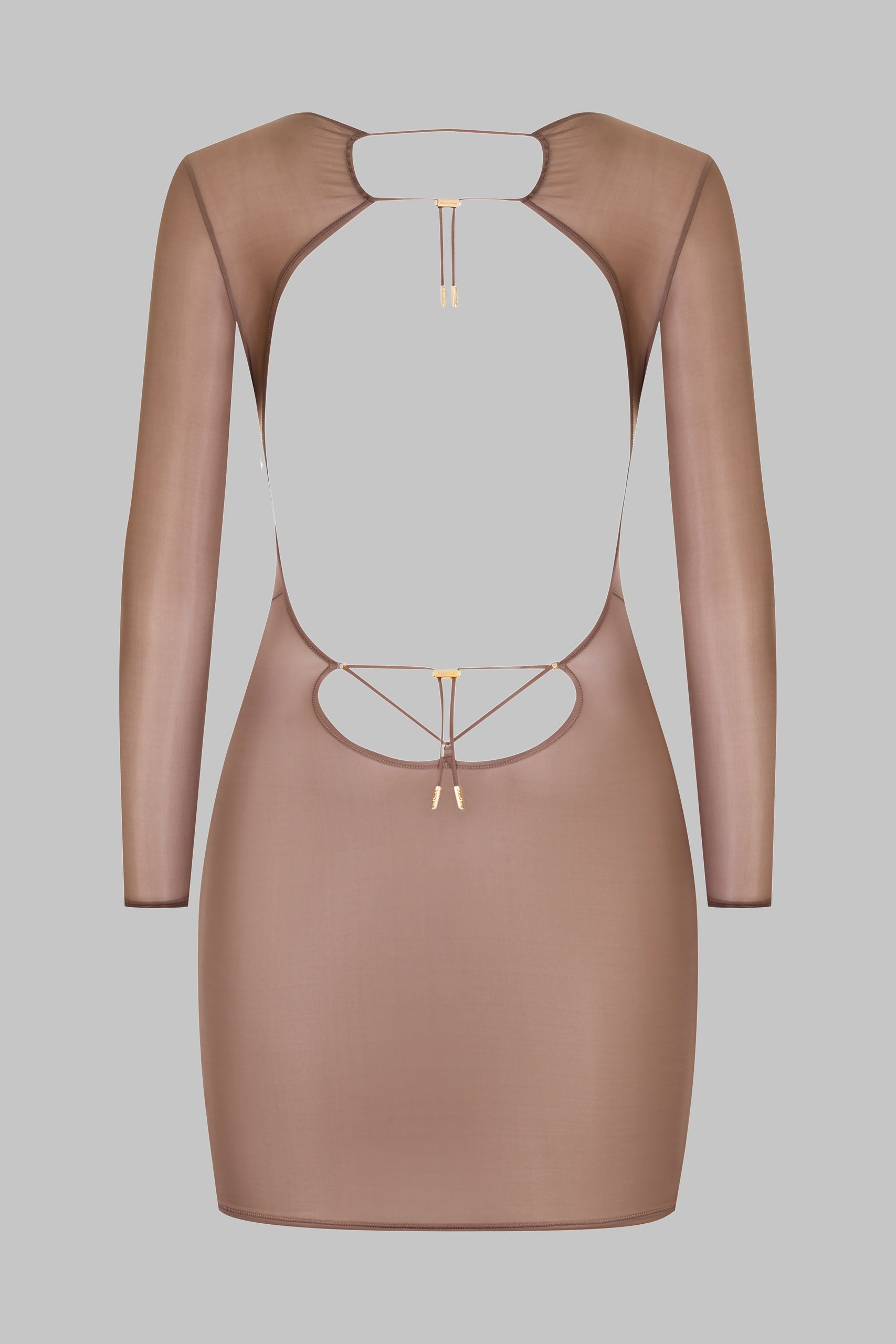 Maison Close Women’s Lingerie French Kiss Light Short Open Back Long Sleeve Dress | Mocha