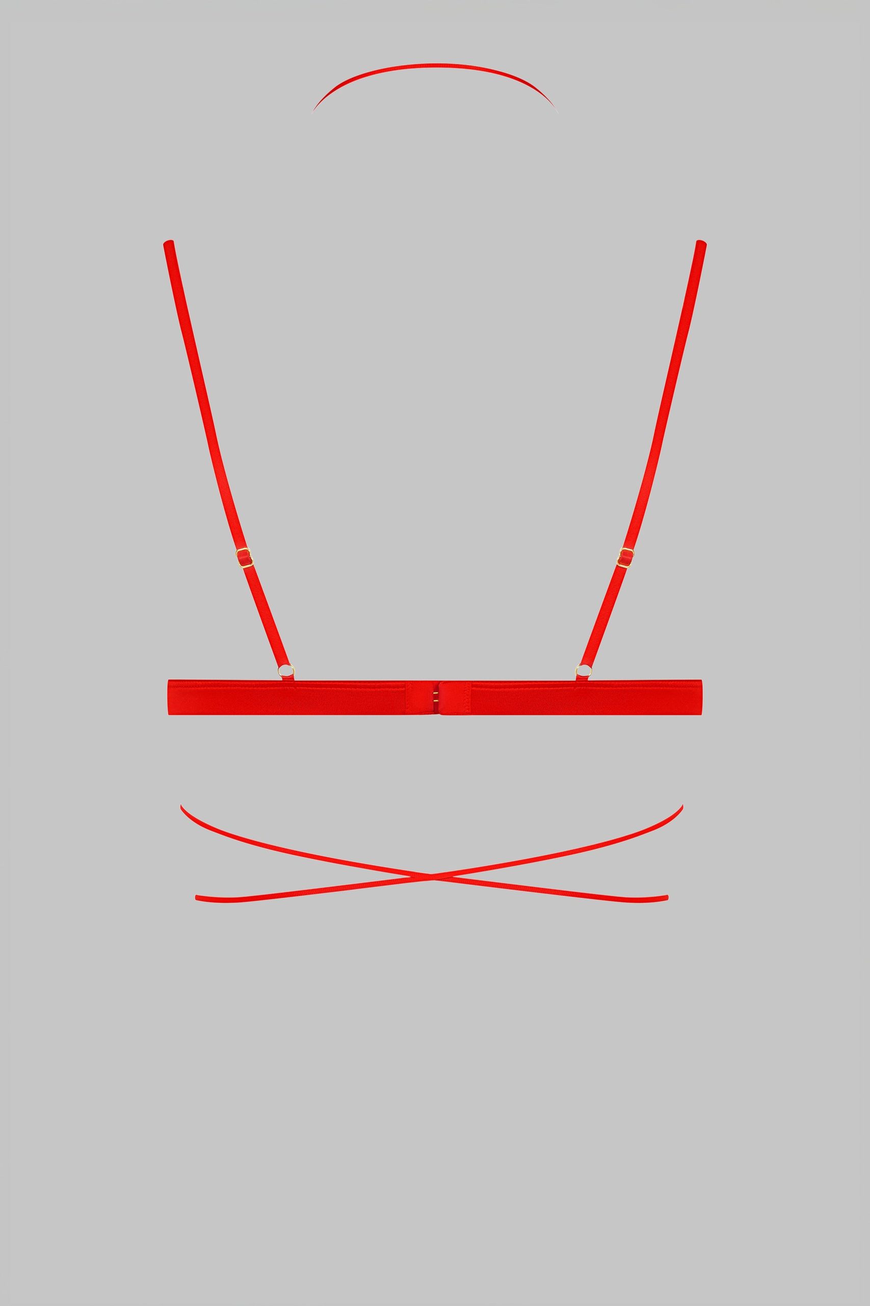 No-underwire triangle bra, combining satin softness and style. Designed to fit the shape of your breasts perfectly thanks to its seamless moulded triangle cups. Totally removable and adjustable thanks to a unique adjuster and gold lipstick accessories by Maison Close, the lacing around the neck enhances your décolleté while allowing you to personalise it as you wish. The flat and adjustable fine straps ensure a perfect fit. An elasticated band around the chest perfectly hugs and shapes the bust. Adjustable hook-and-eye fastening at the back.