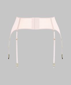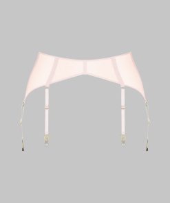 Garter belt in 100% sheer mesh. Arched front with lined mesh for a contrast of transparency and opacity. Six adjustable, non-removable garters outline the thighs. Sleek and subtle hook and loop back closure.