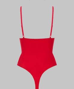 Opaque microfibre peephole thong bodysuit with elasticated picot trim. Fitted design structured with two crossover pieces and a crotch opening. Graphic under-bust shape with elasticated picot harness. Straps can be adjusted with tone-on-tone accessories. The perfect gift to slip in their bag for a weekend away.
