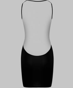 The V-neck Minuit dress – Pure Tentation is a piece of pure suggestion. Its short cut leaves the legs bare, while the deep V-neckline and ultra-sheer back rewrite the rules of seduction.