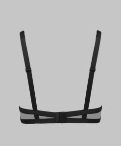 The open harness bra Pure Tentation plays with the boundaries of visibility. Its graphic construction in sheer tulle and opaque microfiber structures the bust while revealing it, with controlled boldness.