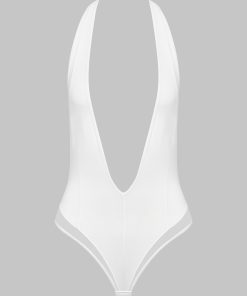 The V-neck thong bodysuit – Pure Tentation explores contrasts. Its cut enhances the figure with a plunging V-neckline at the front and an ultra-sheer back scooped down to the small of the back. Made from light tulle and opaque microfiber, it plays with layering and illusion. A discreet hook-and-eye closure at the crotch ensures comfort, while a back neck opening makes it easy to slip on. Cotton lining at the crotch.