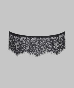 A lace mask that hugs the face like jewellery against the skin. It features a dainty ribbon of natural silk that you may tie around your eyes, wrists or ankles, or leave untied. Personalised with a Maison Close gold signature on the side.