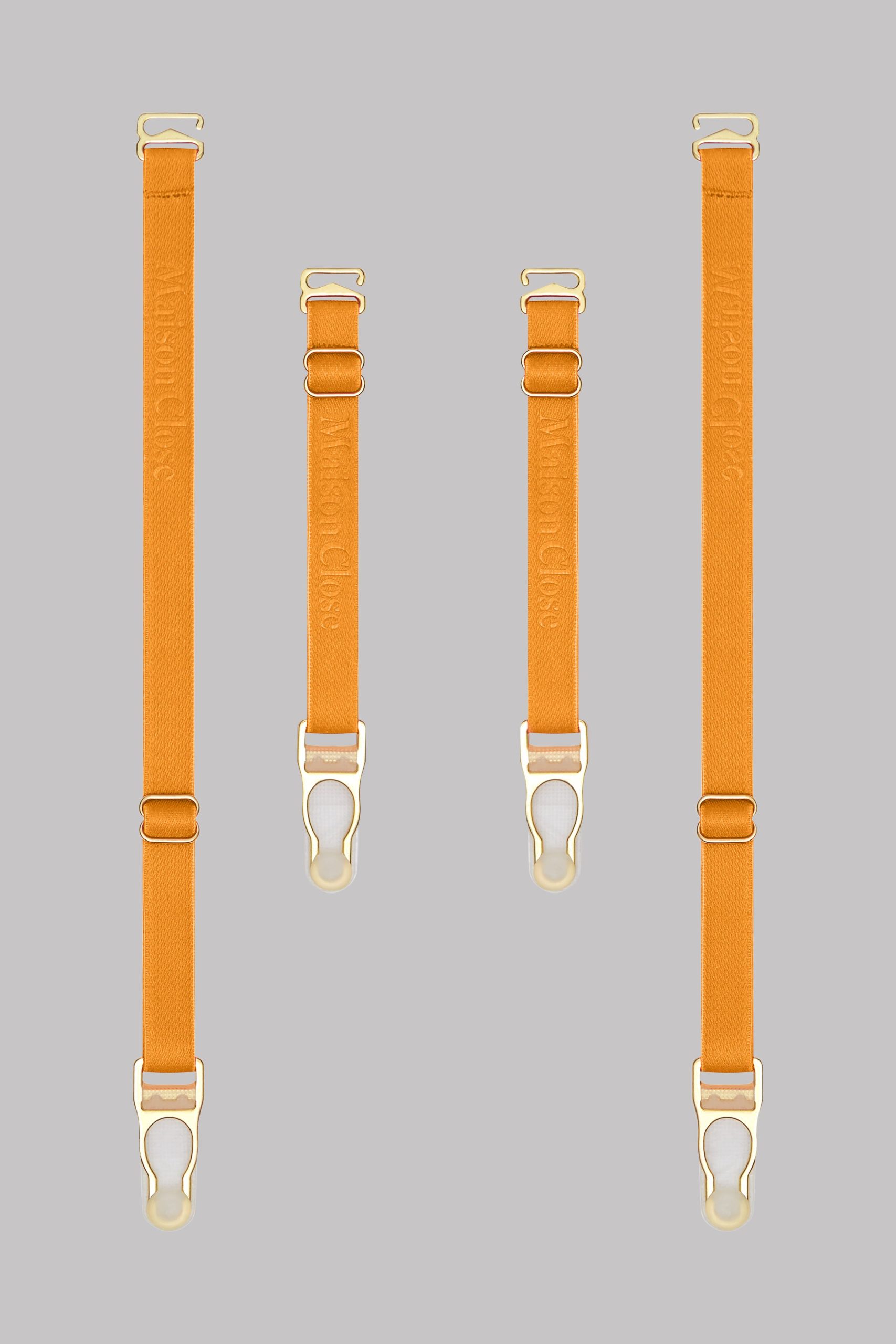 Four neon detachable, adjustable Signature suspender straps with gold accents. Team with other Signature items available in various colours. An opportunity for each Muse to create their own zingy mix and match.
