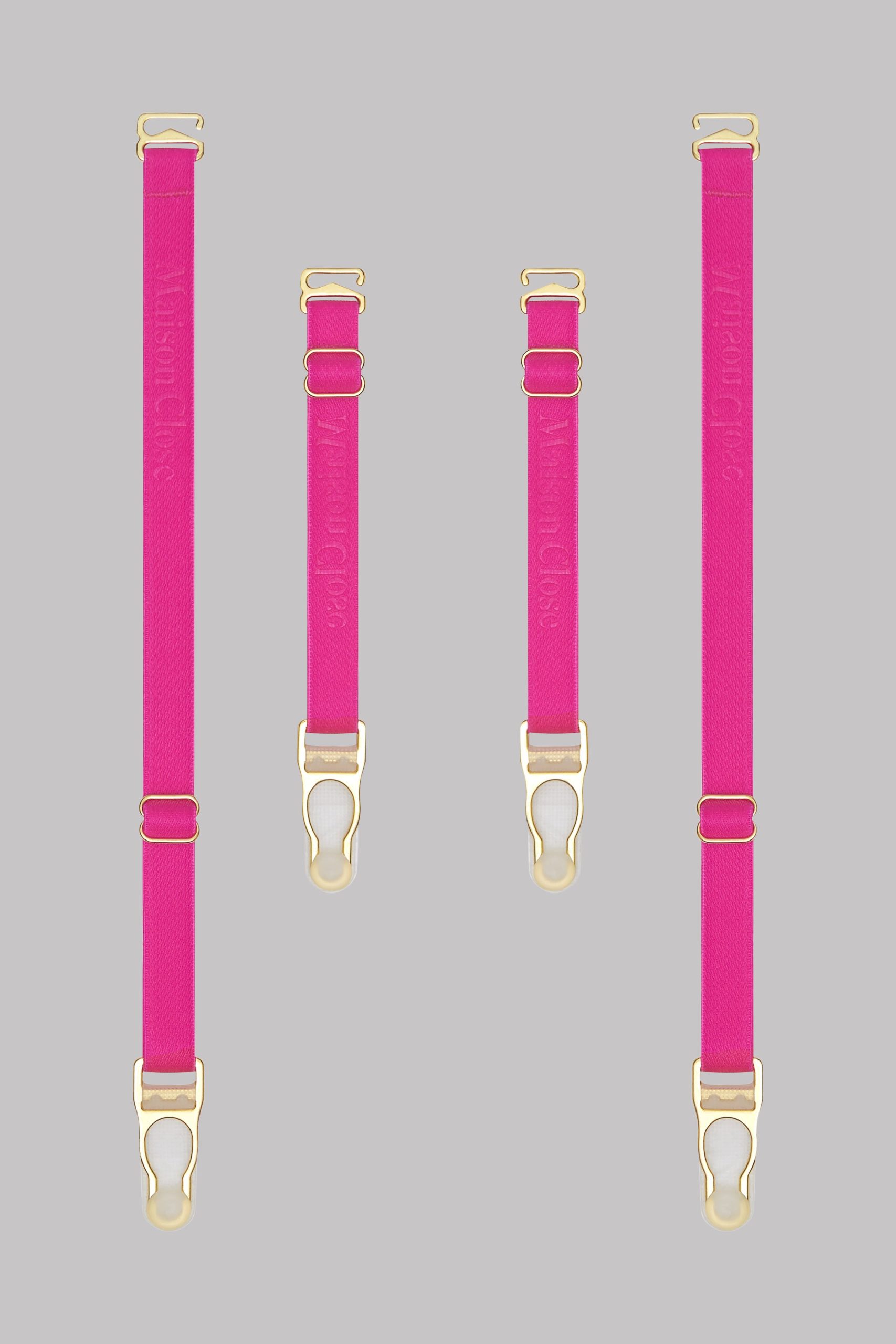 Four neon detachable, adjustable Signature suspender straps with gold accents. Team with other Signature items available in various colours. An opportunity for each Muse to create their own zingy mix and match.
