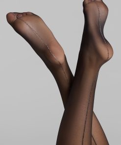 Maison Close Women’s Les Coquetteries Cut And Curled Back Seamed Stockings With Cross 20d | Black